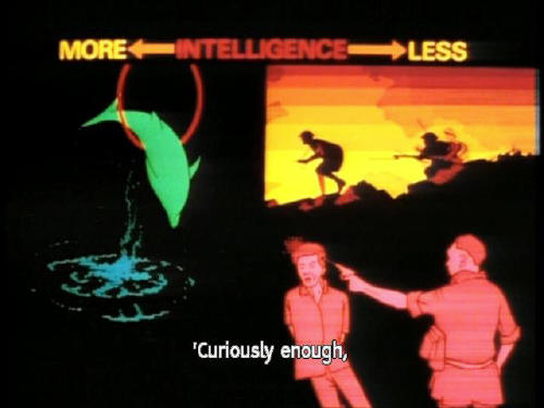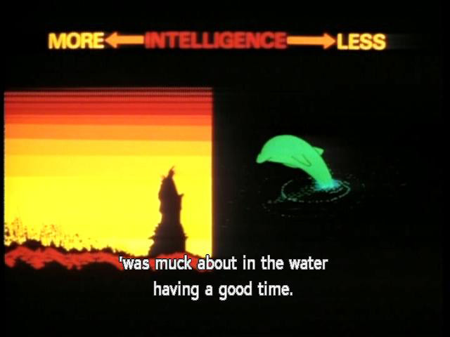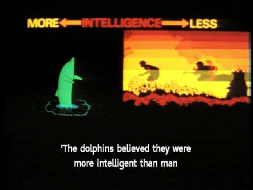 'was muck about in the water having a good time. 'The dolphins believed they were more intelligent than man 'for precisely the same reasons. 'Curiously enough, |