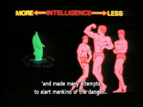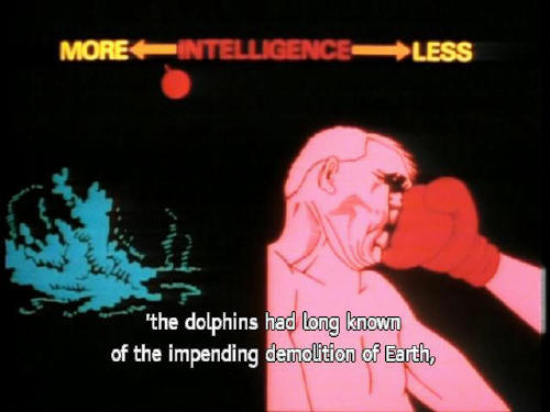 'the dolphins had long known of the impending demolition of Earth, 'and made many attempts to alert mankind of their danger ... 'but most of their communications were misinterpreted 'as amusing attempts to punch footballs or whistle for titbits, |