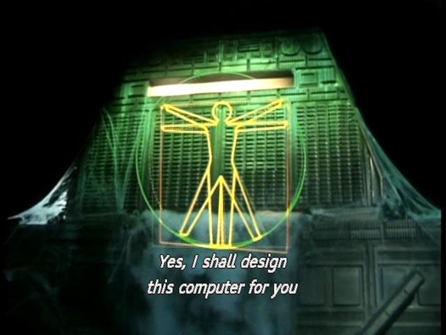 [Deep Thought] You yourselves shall take on new forms and go down into the computer [Deep Thought] to navigate its 10-million-year program! [Deep Thought] Yes, I shall design this computer for you [Deep Thought] and I shall name it also unto you |