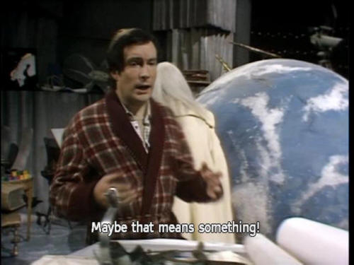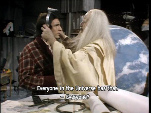[Arthur] No one would tell me what it was. [Slartibartfast] That's just perfectly normal paranoia. [Slartibartfast] Everyone in the Universe has that. [Arthur] Everyone? [Slartibartfast] Everyone. [Arthur] Maybe that means something! [Arthur] That outside the Universe we know, some alien intelligence is ... |