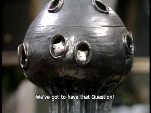 [Frankie] What? [Arthur] Best-laid plans of mice and men. [Benjy] What have men got to do with it? [Benjy] We've got to have that Question! [Arthur] I'm sorry I can't help you. Shall we be off? [Zaphod] Get this, you are a last generation product of that computer matrix. [Zaphod] You were there before your planet got the finger. |