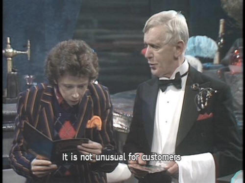 [Ford] Wow! What sort of drinks do you serve in this place? [Waiter] I think sir has misunderstood me. [Ford] I hope not! [Waiter] It is not unusual for customers |