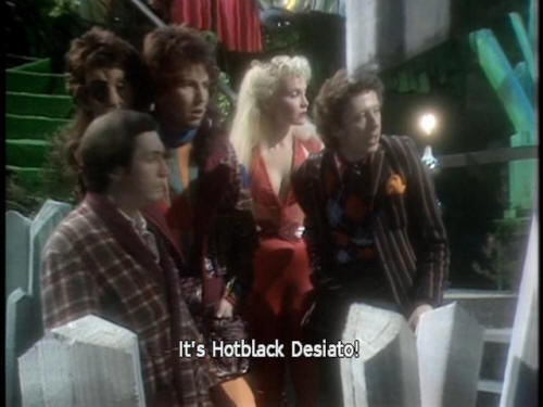 [Zaphod] Hey, everybody's here. You know -- everybody who was anybody! [Zaphod] Hi, guys! How did you do? [Crowd] Hi! [Ford] Hey, Zaphod! There's an old mate of mine. Look, see! [Ford] It's Hotblack Desiato! [Ford] See the big guy in the platinum suit? |
