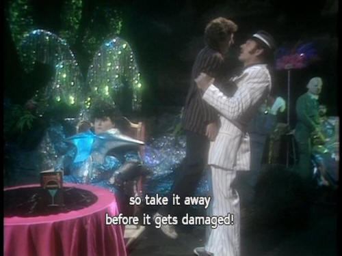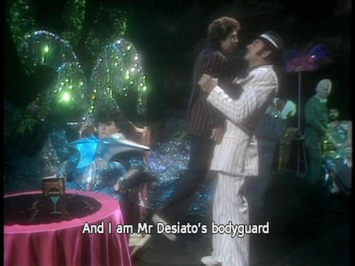 [Bodyguard] And I am Mr. Desiato's bodyguard [Bodyguard] and I'm responsible for his body, [Bodyguard] and I am not responsible for yours, [Bodyguard] so take it away before it gets damaged! [Ford] Now, wait a minute ... |