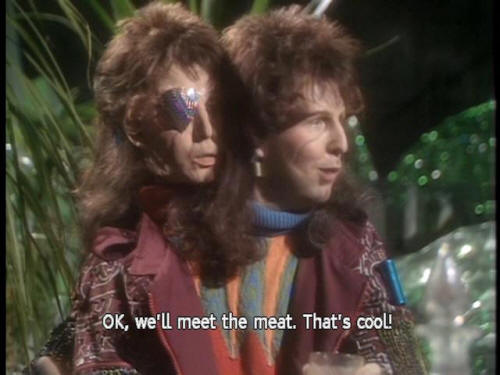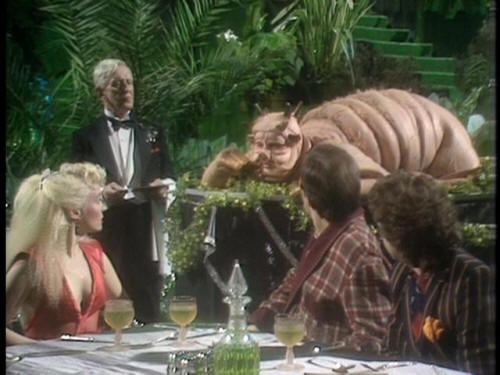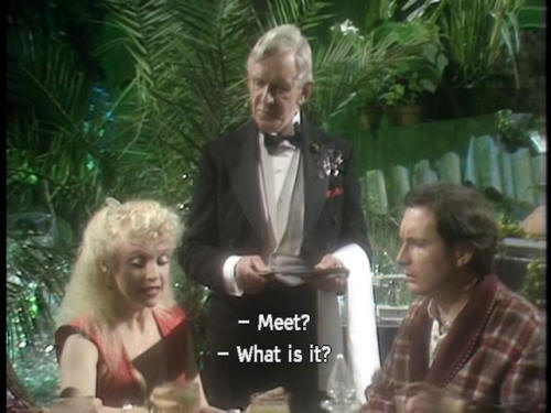[Arthur] Meet? [Trillian] What is it? [Waiter] It's an Amiglion Major cow. I'll bring him over. [Zaphod] OK, we'll meet the meat. That's cool! [Dish of the Day] Beugh ... A-hem ... [Dish of the Day] (RUSTIC ACCENT) Good evening, madam and gentlemen, |