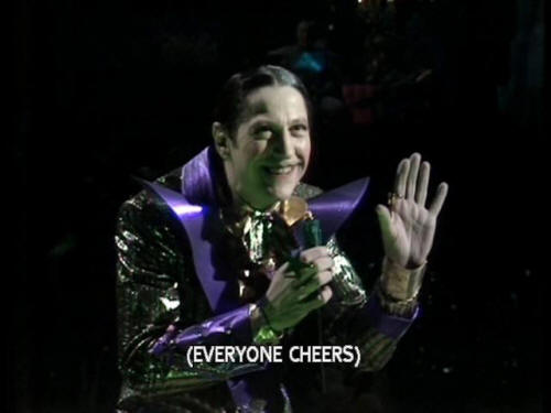 [Host] Is everybody having one last wonderful time? (EVERYONE CHEERS) [Host] Good. [Host] And now, as the photon storms gather in swirling clouds around us, |