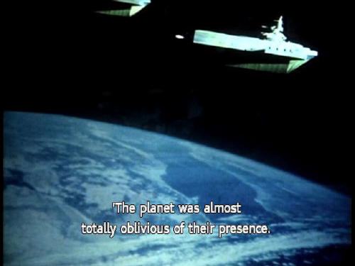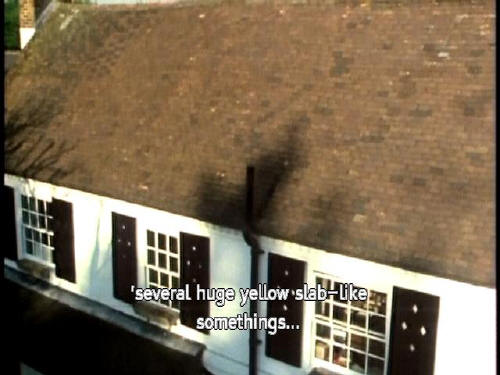 'several huge yellow slab-like somethings ... 'huge as office blocks, silent as birds, 'they hung in the air exactly the same way that bricks don't. 'The planet was almost totally oblivious of their presence. |