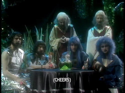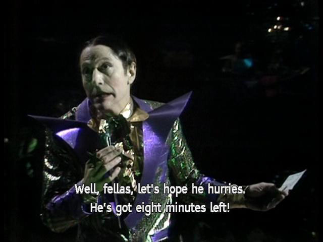 [Host] from the Church of the Second Coming [Host] of the Great Prophet Zarquon. (CHEERS) [Host] Still waiting for the second coming. [Host] Well, fellas, let's hope he hurries. He's got eight minutes left! |