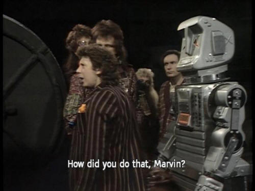 [Ford] How did you do that, Marvin? [Marvin] Oh, didn't I tell you I've got a brain the size of a planet? [Zaphod] Oh, yeah. [Ford] Hey, Zaph, come and have a look at this. |