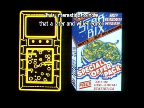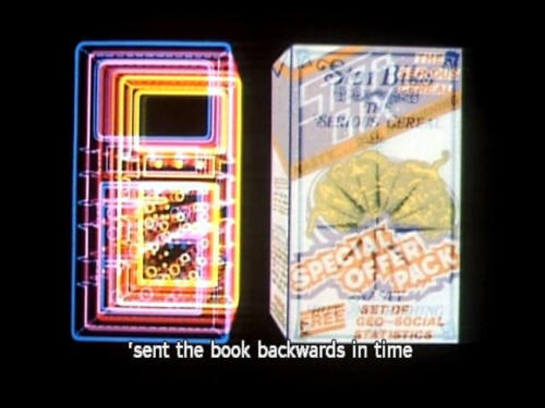 'It is interesting to note that a later and wilier editor 'sent the book backwards in time 'through a temporal warp, 'and then successfully sued the breakfast cereal company |