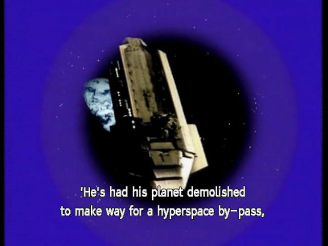 'He's had his planet demolished to make way for a hyperspace by-pass, 'and has been confronted with the disconcerting knowledge 'that the Earth was not what it appeared, 'but was in fact a gigantic super-computer 'designed to calculate the Ultimate Question of Life, the Universe and Everything. |