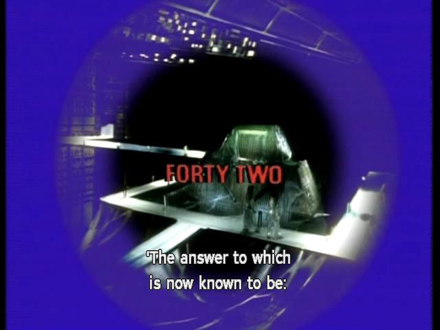 'The answer to which is now known to be: FORTY TWO 'He and his companions have been blasted far forward in time 'to the Restaurant at the End of the Universe, 'from which they're returning in a ship |