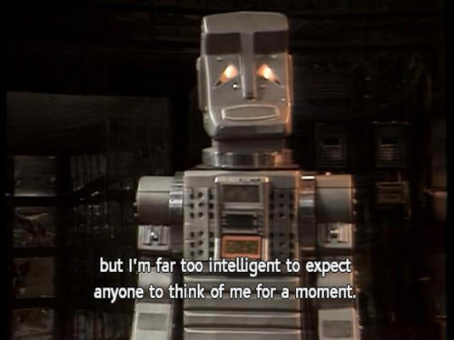 [Marvin] but I'm far too intelligent to expect anyone to think of me for a moment. [Marvin] In fact, I'm so intelligent, I've probably got time to go through the five-mill ... (ROCK MUSIC CRESCENDO) |