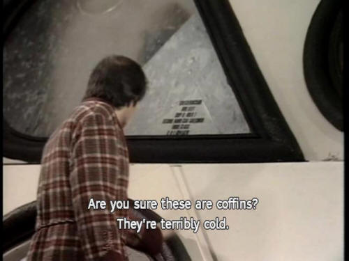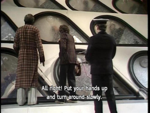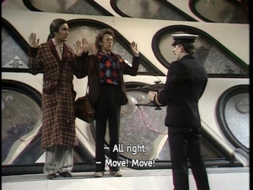 [Arthur] Are you sure these are coffins? They're terribly cold. [Guard] All right! Put your hands up and turn around slowly. [Arthur] Why isn't anyone ever pleased to see us? [Guard] You're my prisoners. [Ford] All right. [Guard] Move! Move! [Ford] Move? [Guard] Move! |