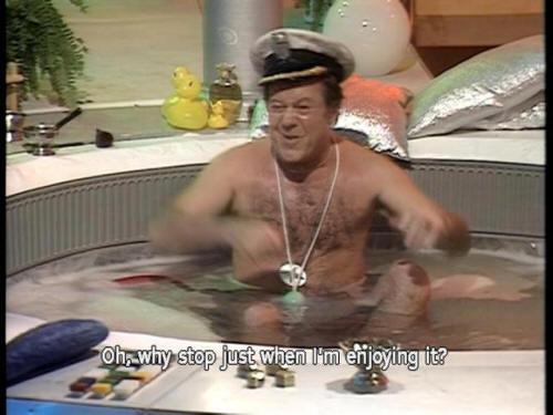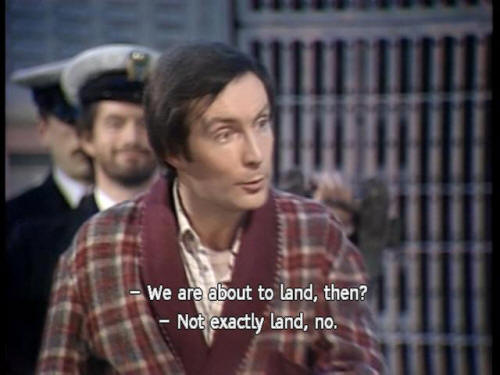 [Captain] We're nearly there. Nearly there. [Captain] I should be out of this bath, in fact ... [Captain] Oh, why stop just when I'm enjoying it? [Arthur] We are about to land, then? [Captain] Not exactly land, no. [Captain] As far as I remember, we were programmed to crash on it. |