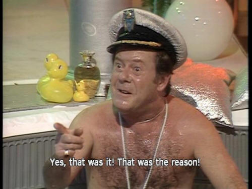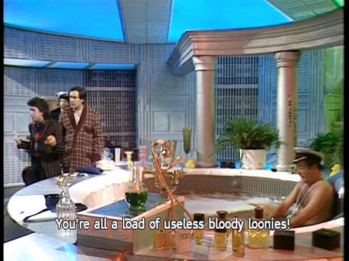 [Both] Crash?! [Captain] Some reason for it, but for the life of me I can't remember what it was. [Ford] You're all a load of useless bloody loonies! [Captain] Yes, that was it! That was the reason! |