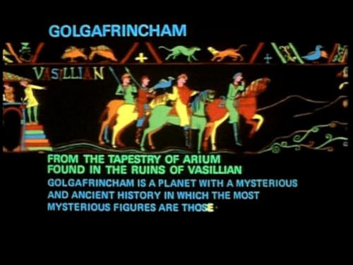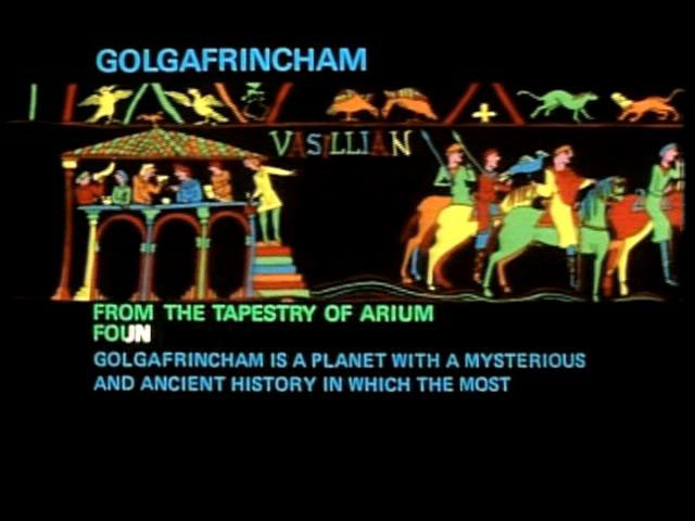 DON'T PANIC! 'The Hitchhiker's Guide to the Galaxy has this to say about Golgafrincham: 'It is a planet with an ancient and mysterious history in which the most mysterious figures are those of the great circling poets of Arium. |