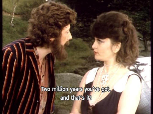 [Ford] You see, I've seen the future. [Ford] Two million years you've got, and that's it! [Ford] At the end of that time, your race will be dead. Gone. And good riddance. [Ford] Remember that. Two million years. |