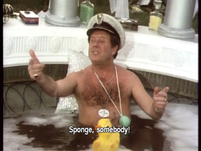 [Manager] Strange chap. What about those documentary things? [Captain] Just time for another bath! [Captain] Sponge, somebody! [Arthur] No, no, no! Honestly! [Arthur] "Y" scores five, and it's on a triple word score. I explained the rules. |