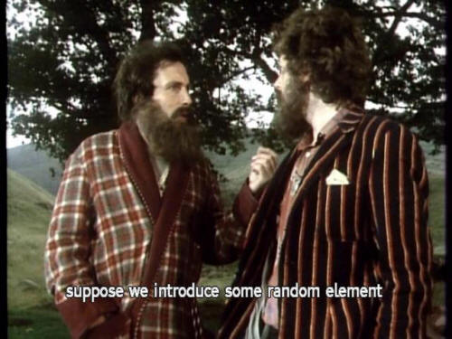 [Ford] If it's in your brain, how are we going to get at it? [Arthur] How about ... if it's in my brain, and I can't reach it, [Arthur] suppose we introduce some random element [Arthur] shaped by the brainwave patterns? [Ford] Such as? [Arthur] Pulling out letters from the Scrabble bag. [Ford] Brilliant! [Arthur] Right! |