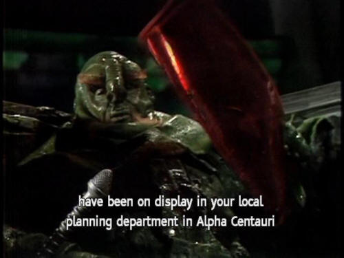 [Vogon Captain] have been on display in your local planning department in Alpha Centauri [Vogon Captain] for 50 Earth years, [Vogon Captain] and so you've had plenty of time to lodge any complaints ... |