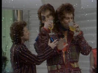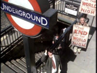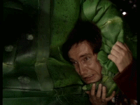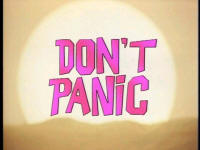 Hitchhiker's Guide to the Galaxy -- Illustrated Screenplay and Screencap Gallery (Transcribed from the movie by Tara Carreon, American Buddha Online Librarian) TIME: 06:30 DESTRUCTION OF EARTH DUE: 11:46:00 TIME TO ELAPSE BEFORE END OF THE WORLD: 05:16:48 This is the story of the Hitchhiker's Guide To the Galaxy, perhaps the most remarkable, certainly the most successful book ever to come out of the great publishing corporations of Ursa Minor. More popular than The Celestial Home Care Omnibus, better selling than Fifty-three More Things To Do in Zero Gravity, and more controversial than Oolon Colluphid's trilogy of philosophical blockbusters, Where God Went Wrong, Some More of God's Greatest Mistakes, and Who is This God Person Anyway? And in many of the more relaxed civilizations on the Outer Eastern Rim of the Galaxy, the Hitchhiker's Guide has already supplanted the great Encyclopaedia Galactica as the standard repository of all knowledge and wisdom, for though it has many omissions and contains much that is apocryphal, or at least warrantly inaccurate, it scores over the older, more pedestrian work in two important respects. First, it is slightly cheaper and, secondly, it has the words: DON'T PANIC inscribed in large, friendly letters on the cover. To tell the story of the book, it is best to tell the story of some of those whose lives it affected. A human from the planet Earth was one of them, though, as our story opens, he no more knows his destiny than a tea leaf knows the history of the East India Company. His name is Arthur Dent, he is a six-foot-tall ape descendant, and someone is trying to drive a bypass through his home. (RUMBLING) (BIRDS TWITTER) [Construction Supervisor] Come off it, Mr. Dent -- you can't win, you know. You can't lie in front of the bulldozers indefinitely. [Arthur Dent] I'm game. We'll see who rusts first! [Construction Supervisor] You're going to have to accept it. This bypass has got to be built and it's going to be built. Nothing you can say ... [Arthur Dent] Why's it got to be built? [Construction Supervisor] What do you man -- why's it got to be built? It's a bypass! You've got to build bypasses. You were quite entitled to make any suggestions or protests at the appropriate time. [Arthur Dent] Appropriate time?! The first I heard about it was when a workman arrived at the door yesterday. I thought he'd come to clean the windows. And he told me he'd come to demolish the house! Oh, he didn't tell me straightaway, of course. No, first he wiped a couple of windows and charged me a fiver! Then he told me! [Construction Supervisor] But, Mr. Dent, the plans have been available in the planning office for the last nine months! [Arthur Dent] Oh, yes, of course. As soon as I heard, I went straight round to see them. You hadn't exactly gone out of your way to call much attention to them, have you? Like telling anybody, or anything? [Construction Supervisor] But the plans were on display! [Arthur Dent] On display? I eventually had to go down to the cellar! [Construction Supervisor] That's the display department! [Arthur Dent] With a torch! [Construction Supervisor] The lights are probably out. [Arthur Dent] So had the stairs! [Construction Supervisor] But you did see the notice, didn't you? [Arthur Dent] Oh, yes. It was on display in the bottom of a locked filing cabinet, stuck in a disused lavatory with a sign outside the door saying, "Beware of the leopard!" Ever thought of going into advertising? (ENGINE STARTS) [Arthur Dent] And you don't get me like that either! [Construction Supervisor] Mr. Dent, have you any idea how much damage this bulldozer would suffer if I were to let it run straight over you? [Arthur Dent] How much? [Construction Supervisor] None at all! [Narrator] By a strange coincidence, "None at all" is exactly how much suspicion the ape descendant Arthur Dent had that one of his closest friends was not descended from an ape, but was in fact from a small planet somewhere in the vicinity of Betelgeuse. Arthur Dent's failure to suspect this reflects the care with which his friend blended himself into human society, after a fairly shaky start. When he first arrived 15 years ago, the minimal research he had done suggested to him that the name Ford Prefect would be nicely inconspicuous. He will enter our story in 30 seconds and say, "Hello, Arthur." The ape descendant will greet him in return but, in deference to a million years of human evolution, he will not attempt to pick fleas off him. Earthmen are not proud of their ancestors and never invite them round to dinner. [Ford Prefect] Hello, Arthur. [Arthur Dent] Ford, hi. How are you? [Ford Prefect] Fine. Look, are you busy? [Arthur Dent] Busy?! Well, I've just got this bulldozer to lie in front of, or it'll knock my house down, but otherwise ... no, not especially. Why? [Ford Prefect] Good. Anywhere we can talk? [Arthur Dent] What? [Ford Prefect] We've got to talk. [Arthur Dent] Fine! Talk. [Ford Prefect] And drink. It's vitally important that we talk and drink. Now! We'll go to the pub in the village. [Arthur Dent] Ford, you don't understand. That man wants to knock my house down. [Ford Prefect] Well, he can do that whilst you're away, can't he? [Arthur Dent] I don't want him to! [Ford Prefect] Ach! [Arthur Dent] Ford? What's the matter? [Ford Prefect] Nothing ... nothing's the matter. Listen tome. I've got to tell you the most important thing you've ever heard. I've got to tell you NOW, and I've got to tell you in the saloon bar of the Red Lion. [Arthur Dent] Why? [Ford Prefect] Because you're going to need a very stiff drink! [Arthur Dent] No! No! What about my house? [Ford Prefect] He wants to knock your house down? [Arthur Dent] Yes. [Ford Prefect] And he can't because you're lying in the way of his bulldozer? [Arthur Dent] Exactly! [Ford Prefect] I think we can come to some arrangement. Excuse me! [Construction Supervisor] Hello? Yes? Has Mr. Dent come to his senses yet? [Ford Prefect] Can we, 