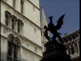 Now we’ve reached a point here, if we just turn around, of the headquarters of the global mind control network. This is the Tavistock Institute on Tabernacle Street, 30 Tabernacle Street in London. It was this network, and is this network, that controls the mind control network around the world, both on a mass and individual level. The background to this organization is this: It used to be a part of the British military psychological warfare department. Appropriately. And it was developed by a guy named Dr. John Rawlings Reese. And other parts of the network were established around the world -- Stanford in America is one of them. And together they coordinate the mass mind manipulation of the human race, and mind control people on an individual level. Just to give you an idea, these mind-controlled people are overwhelmingly those that do the assassinations. Why is it always a lone nutter that’s responsible for assassinations? Some people say, “Oh, he was just a nutter. No conspiracy. No more investigation necessary." Why is it that the same psychological profile keeps turning up all over the world with guns, going crazy with guns in the street, killing people, creating Problem-Reaction-Solution situations in which legislation comes through and is introduced as a result of those horrors? Interestingly, Martin Bryant, the man who went crazy with a gun in Port Arthur, Tasmania, just happened to be treated by a guy called Dr. Eric Cunningham Dax. Now Cunningham Dax was the Tavistock Institute representative in Australia, and a close associate for decades of Dr. John Rawlings Reese, who set the whole thing going. So when someone goes crazy with a gun, or these horrific things happen, we need to ask a question, “Are they doing it from their own mind, or are they programmed to do it because of the effect of what they do?” Now Arizona Wilder was brought up from birth in these mind control programs. And her programmer was Joseph Mengele, the angel of death. And when he eventually died in the late 80’s, because the subject of the programming becomes so attached to the programmer, almost worshipping the programmer, when the programmer dies, often the programming starts to break down. It did with this lady, and that’s why she’s speaking out, and talking in staggering detail about what she experienced, and the people that she was involved with. People might find it hard to believe that Joseph Mengele was in the United States and South America after the war. But there was a British Intelligence, American Intelligence operation called “Project Paperclip,” which got people like Mengele and other leading Nazis out of Germany at the end of the war, to continue their mind programming and to continue their genetic research and manipulation in America after the war. In the United Kingdom also. So this is some important background to this Arizona Wilder interview. But it’s not even the biggest secret. The biggest secret is even more bizarre than that. Well, now I’ve come literally a few strides outside the official boundaries of the City of London, into an area known as Temple Bar, where the royal courts of justice are established. And this is the center of the British legal profession. Not just the British legal profession, but the legal profession of the world as “The Biggest Secret” exposes. This is where they come to the Bar, as it is said, to become barristers, the top of the legal profession, and eventually to become the judges, that are part of the network of the secret society network overwhelmingly, who are told what to do. And when you’ve got judges being told what to do by the secret society network, what justice is there? Temple Bar is named after the Knights Templar, one of the secret societies in the ancient world which I talk about in my books. And they were part of this network. And their successors are continuing that manipulation and agenda to this day. Now I’m standing across the road from the Royal Courts of Justice here, outside something called "The Outer Temple." This is one of the major secret societies that manipulate and control the legal profession, and the workings of so-called “justice,” in Britain. And indeed, like I say, further afield. But the reason I’ve come here, overwhelmingly, is to point out something in the center of the road here at the boundary between Temple Bar and the City of London. And it’s a massive reptile figure. A dragon figure in the center of the road. Now we’re getting into what the biggest secret is here. Because when you go around London, and indeed looking at the coats of arms of the aristocratic families, etcetera, again and again you keep seeing reptiles. You keep seeing dragons. And you’ve got the serpent race, and the dragon race, constantly recurring in the ancient texts describing the gods of the ancient world. And there is a reason for this. There is a reason that dragons appear everywhere. And that is the biggest secret which Arizona Wilder has also experienced. Right at the start of our little tour of London, in that square outside the Bank of England, it’s also possible to see again this same theme that keeps reoccurring, of flying dragons, of flying serpents. We’ve seen one major serpent figure, serpent statue, at one entrance to the City of London, near the lower courts. And here I am alongside the river Thames, at another entrance to the City of London -- this epicenter of global control -- and what do we have to signpost the fact that you’re entering the City of London? Yet another flying dragon. This one holding the shield with the red cross on the white background. This ancient symbol that I talked about with the flag on top of the Mansion House, and the flag of England, the flag of St. George. So what’s going on? Why, when you look at the ancient accounts of the ancient gods, do you again and again see this reoccurring theme of the serpent race, the serpent gods, the flying serpents? Why