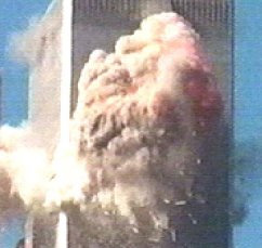There's more. Keep an eye on the adjacent east side of the building, which is also visible. See how, a few frames into the explosion, a white jet of smoke erupts out of the east side at the same level as the plane. The jet comes straight out of the wall at right angles to it, not angled in accordance with the trajectory of the plane. Also it's just white smoke and dust, no orange flames or anything like that. It is clearly a bomb going off, creating the gash that appears on the east wall. I know what I am describing sounds incredible. I suggest only that you look at the footage yourself and come to your own conclusions about what you see. The plane that hit the North Tower was not American Airlines Flight 11. It was not a Boeing 767. It was a custom-built military plane carrying three missiles that created the impression of a plane crash without leaving any wreckage. In order for it precisely to strike the correct part of the tower (in line with the bomb already planted in the east wall) it must have been flown remotely using cruise navigation. I believe a similar plane was used to strike the Pentagon. The 'Conspiracy Theorists' have got it dead right this time. The true Flights 11, 175, 77 and 93 were indeed substituted with other planes when the transponders were switched off. Someone hijacked the hijackers to make sure the job was done properly. The 'Fireman's Video' is Bush's true smoking gun. It is in the public domain and it is even available on DVD. It is probably sitting in the video shelves of thousands and thousands of homes across the world. It is vitally important that the American people see this video frame by frame so they can make their own minds up about what really happened on September 11. There has been a silent coup in America but few have noticed yet. The Bush Administration is clearly very sinister indeed and God only knows what it has in store for us next. There is a clue though in the things of which it accuses Saddam Hussein: building and using weapons of mass destruction (nuclear and biological) and killing his own people. When Bush describes Saddam he is describing himself. We have entered the Age of the Conjurer and it is going to be a tricky time. The 9-11 stunt was a huge magic trick and we all bought it at first. Magicians can be very convincing. You have to look very hard to see the trick and not be fooled. On this occasion slow motion exposes the sleight of hand, but remember how the magician works: he can make almost anything seem real if he can make his audience look in the wrong place at crucial moments. Only the American people can now stop the imminent slaughter and the imposition of a global fascist police state, but they are currently sleepwalking into their own enslavement. It may already be too late. But maybe if enough Americans get out their videos and their remote controls (pardon the pun) and take a long hard look at that remarkable footage of that plane hitting the North Tower, then an armed and outraged middle America might just pull it off. Hah! Just in is this priceless piece of evidence — the Fireman's Video in QuickTime, good enough to see the action and with frame forward and backward capacity too! More Incredible Evidence