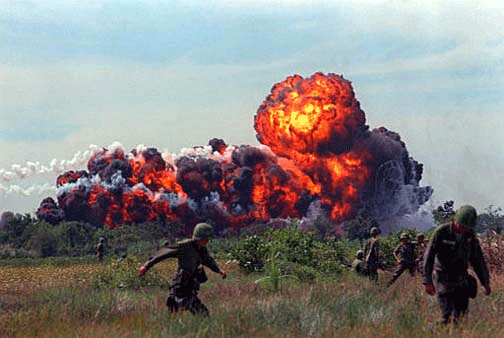 A napalm airstrike during the Vietnam War A napalm airstrike during the Vietnam WarNapalm is a flammable, gasoline-based weapon invented in 1943. The name is a portmanteau word for naphthenic palmitic acids. It was developed during World War II by the United States. In 1980, its use against civilian populations was banned by a United Nations convention. During World War I both the Allies and Germany used gasoline as a weapon in flamethrowers, but gasoline burns itself too quickly to be an effective incendiary device. A substance was needed which would produce a powerful and persistent fuel but would not consume itself too quickly. Though researchers had found ways to make jellied gasoline earlier, many of them required rubber as a principal component, which during wartime was a scarce commodity. In 1942, researchers at Harvard University (led by Dr. Louis Fieser) and the U.S. Army Chemical Warfare Service found a rubber-less solution: mixing an aluminum soap powder of naphthalene and palmitate (naphthenic acid and palmitic acid, sodium palmitrate) with gasoline. This produced a substance which was highly flammable, yet slow burning. In World War II, incendiary bombs using napalm as their fuel were used against the German city of Dresden and during the firebombings of Japan. After World War II, further refinement and development of napalm was undertaken in the United States by the government and its affiliated laboratories. Modern "napalm" contains neither naphthenic nor palmitic acids (despite the name), but often uses a host of other chemicals to stabilize the gasoline base. It is manufactured by Dow Chemical Company. See Bombing of Tokyo in World War II and Bombing of Dresden in World War II for more information on the usage of napalm in the Second World War and chemical warfare for more details on chemical weaponry. Usage in warfare In World War II, Allied Forces bombed cities in Japan with napalm, and used it in bombs and flamethrowers in Germany and the Japanese-held islands. It was used by the Greek army against communist guerilla fighters during the Greek Civil War, by United Nations forces in Korea, by Mexico in the late 1960s against guerrilla fighters in Guerrero and by the United States during the Vietnam War. Napalm is the most terrible pain you can imagine,” said Kim Phuc, known from a famous Vietnam War photograph. “Water boils at 100 degrees Celsius. Napalm generates temperatures of 800 to 1,200 degrees Celsius.” [1] Like many Vietnamese children before and after her, Phuc sustained third-degree burns to half her body and was not expected to live. But thanks to assistance from an American photographer, and after surviving a 14-month hospital stay and 17 operations, she became an outspoken peace activist. The use of napalm and other incendiaries against civilian populations was banned by a United Nations convention in 1980 [2]. The United States did not sign the agreement, but claimed to have destroyed its napalm arsenal by 2001. The United States officially destroyed its last container of napalm in a public ceremony in 1991, however it had reportedly been using napalm-like incendiaries in the 2003 invasion of Iraq [3]. In August 2003, the Pentagon confirmed the use of Mark 77 firebombs (codenamed MK77s). "We napalmed both those [bridge] approaches," said Colonel James Alles, commander of Marine Air Group 11. "Unfortunately there were people there ... you could see them in the cockpit video. They were Iraqi soldiers. It's no great way to die. The generals love napalm. It has a big psychological effect." [4] These bombs contain a substance "remarkably similar" to napalm. This substance is made with kerosene, a polystyrene derivative, and other additives. [5] Homemade napalm being burned.Recipes for crude napalm-like substances are commonly circulated on the Internet. These typically purport to produce a thickened gasoline-based substance using soap or polystyrene as a jellying agent. Other recipes call for paraffin wax or animal blood. The methods described for producing such a substance are often dangerous, as is its use (due to flammability, adhesiveness, and poisonous fumes from burning polystyrene). It is also highly illegal to produce incendiary weapons in most countries. One way people may try to produce homemade napalm is by placing gasoline in a styrofoam cooler and allowing it to sit. This is very dangerous and not recommended to try at home or without special training. Return to Inspector General's Report on the Cuban Situation