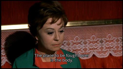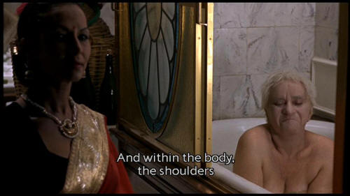 To be happy, you must behave as if in combat. The place to be fought over is the body. [Juliet] The body? [Maestro] And within the body, the shoulders and between the breasts. |