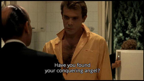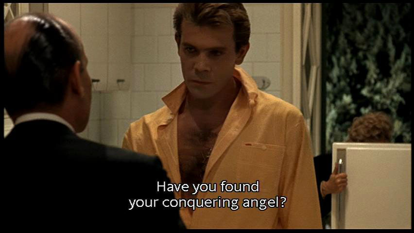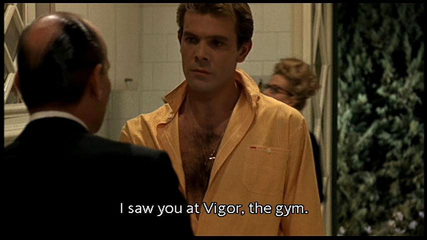 [Man] Have you found your conquering angel? I saw you at Vigor, the gym. [Romolo] Never been there. [Man] I did some bodybuilding too. [Dolores] Let's see. Romolo, pick me up. |