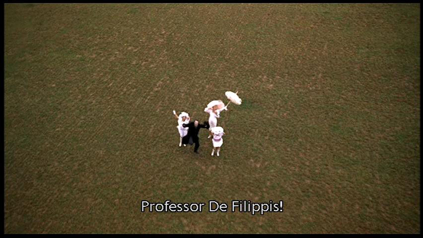 Professor De Filippis! [Juliet] The headmaster had him expelled. He vanished for two years. Then he came back as happy as ever. Mother didn't allow him to stay with us. I saw him at Christmas and always in secret. He told funny stories. I was a little scared, too. The bishop said he was one of the devil's disciples. |
