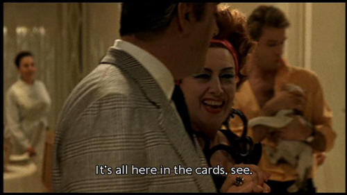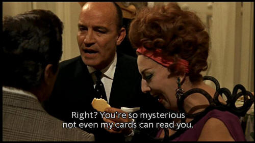 [Elena] What's up, handsome? [Giorgio] It's all here in the cards, see. [Elena] Right? You're so mysterious not even my cards can read you. [Teresina] And now, signora? |