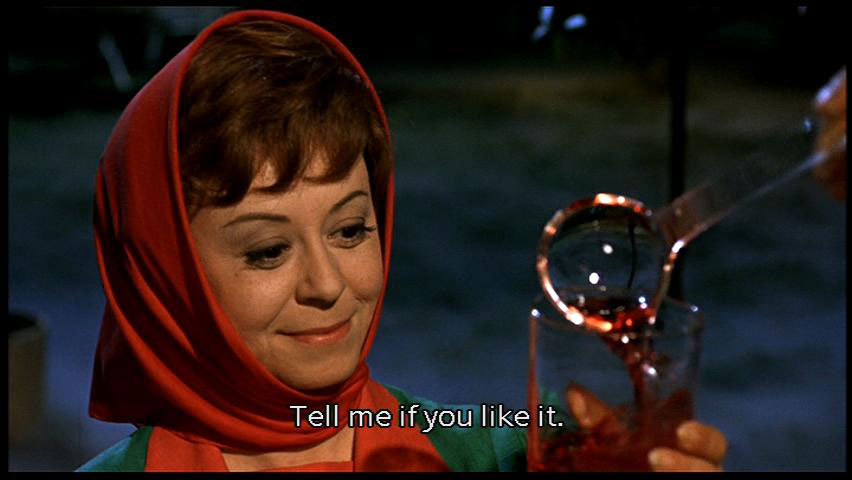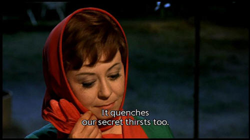 Tell me if you like it. [Juliet] Delicious. What's it called? [Mysterious Man] Sangria. It quenches the thirst of those who drink it. It quenches our secret thirsts too. |