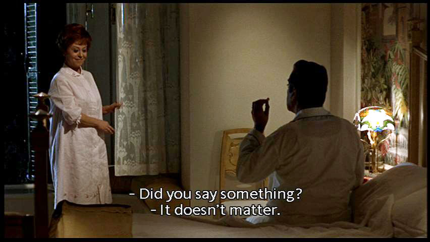 [Giorgio] Did you say something? [Juliet] It doesn't matter.