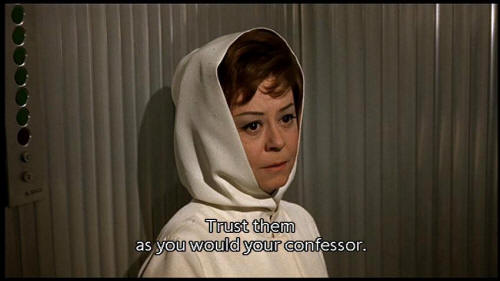 [Juliet] To have him followed, like a thief -- He stole your youth, your peace, your trust. He's the worst kind of thief. [Juliet] But someone spying on what's going on feels like a threesome. [Adele] Isn't it a threesome already? You must have faith. Trust them as you would your confessor. |