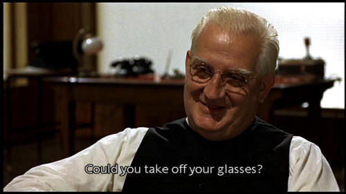 [Juliet] My glasses? Thanks. Does he blush when you look at him? |