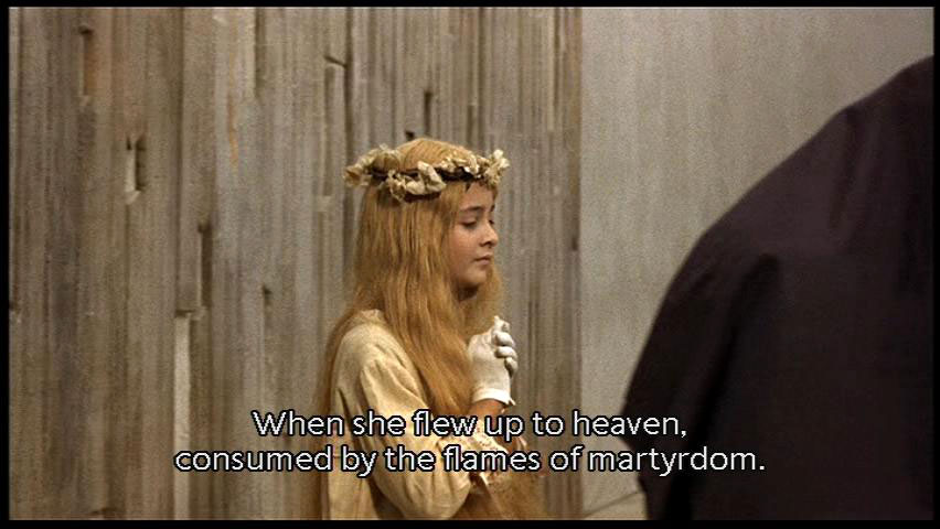 [Little Juliet] Did the saint see God? When she flew up to heaven, consumed by the flames of martyrdom. [Laura] Juliet, swear you’ll tell me?