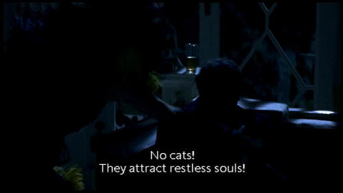 I'll purify the air. [Romolo] Cutie ... [Val] No cats! They attract restless souls! [Romolo] Quiet! Take your seance and -- [Juliet] You two can go to bed now. |