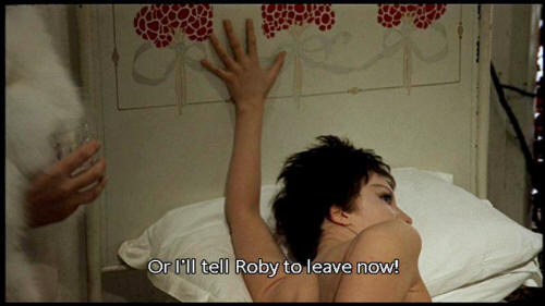 [Man] My lady has a very big heart. [Suzy] You haven't touched your food again. Know what I'll do? I'll call Mrs. Artemia now. She'll set you right. Come on. Up you go. Or I'll tell Roby to leave now! |