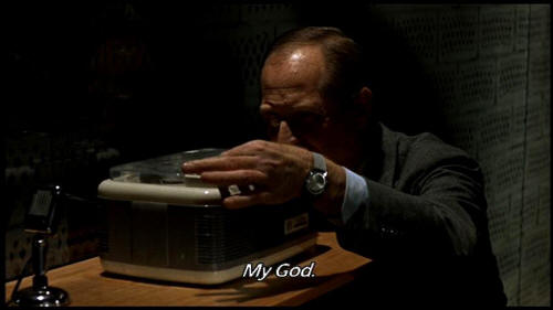 I shot these personally. The tape recorder. We also taped a conversation between them in a park. [Gabriella] My God. That wasn't me. When we met you had another -- [Giorgio] When I met you; When I met you; |