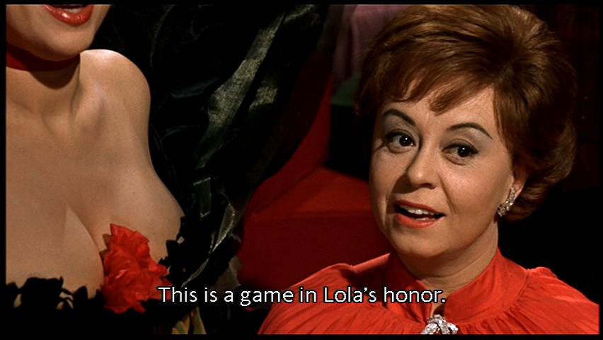 but you'll reach the heights and depths of pleasure. This is my hour. At 11:00 I reach the peak of my desire. [Suzy] This is a game in Lola's honor. We simulate the atmosphere of a brothel. [Juliet] How amusing. |