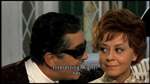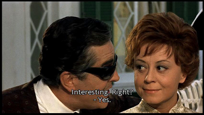 [Giorgio] Care for a drink? [Giorgio] Dr. Miller has proposed a new game: the psychodrama. We reenact our anguishes, projecting them onto somebody else. Interesting. Right? [Adele] I've seen certain people among your guests. |