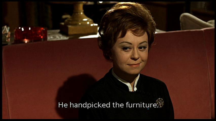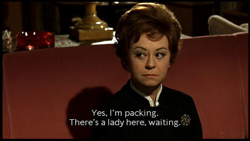 I shouldn't be saying this, 'cause we're relatives, but they make sure a pretty pair. He says he really feels at home here. He handpicked the furniture. All very tasteful. [Maid] [Phone rings] Yes, I'm packing. There's a lady here, waiting. |