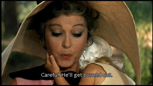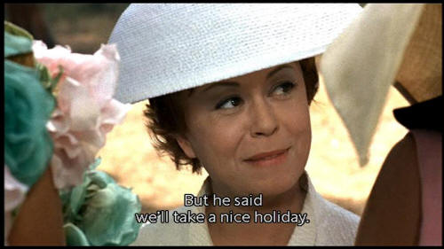 [Adele] Is he ever home? [Juliet] He comes in at night after work. [Adele] Careful. He'll get burned out. [Juliet] But he said we'll take a nice holiday. We'll go on a cruise. Spain, Greece -- he hasn't decided. I have the brochures. |