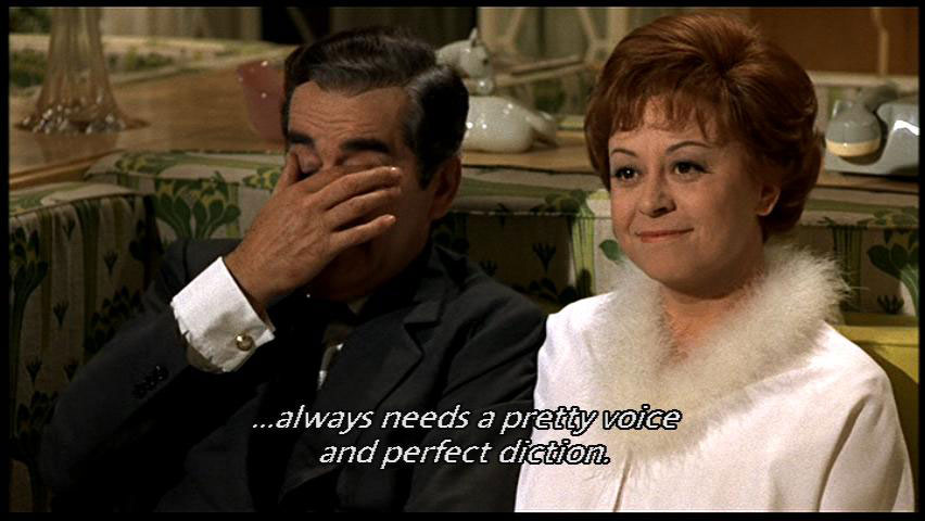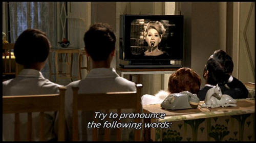 [Juliet] Not even a slice of cake? [Juliet] Sit down here for a while. [TV lady] ... always needs a pretty voice and perfect diction. A good exercise ... [Juliet] Are you tired? [TV lady] Try to pronounce the following words: |