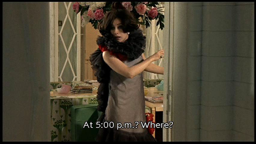 [Val] What? Noon? I'm supposed to meet Ranieri at 11:00! We have such fights if I'm late! Dear, I'm off, but I'll see you at 5:00 p.m. [Juliet] At 5:00 p.m.? Where? [Val] Didn't I tell you? That's why I came. You must join us. |
