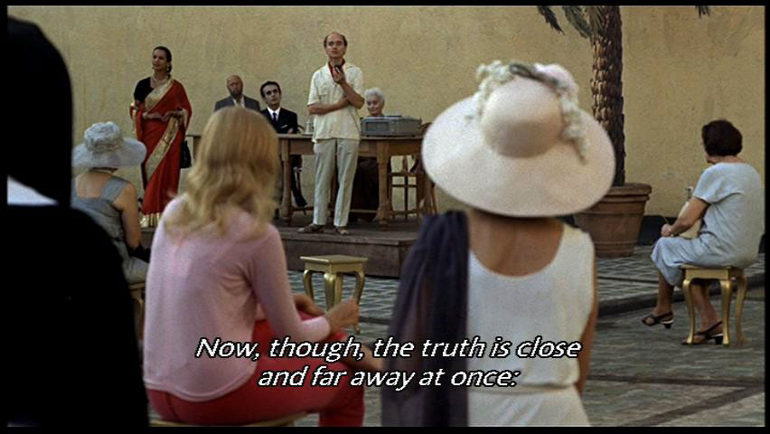 [Woman] The single spirit. The fruit is only appearance. The real Buddha is beyond such differences. Is that right? [Bishma] That's the third step. Now, though, the truth is close and far away at once. So what is this? [Juliet] Isn't it an apple? |