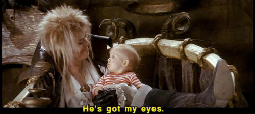 [Jareth] You're welcome. [Jareth] He's a lively little chap. I think I'll call him Jareth. [Jareth] He's got my eyes. |
