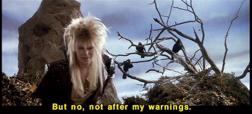 DAVID BOWIE, JENNIFER CONNELLY, MUPPET GOBLINS, AND TOTAL DIS-ENLIGHTENMENT IN JIM HENSON'S "LABYRINTH" -- ILLUSTRATED SCREENPLAY & SCREENCAP GALLERY |